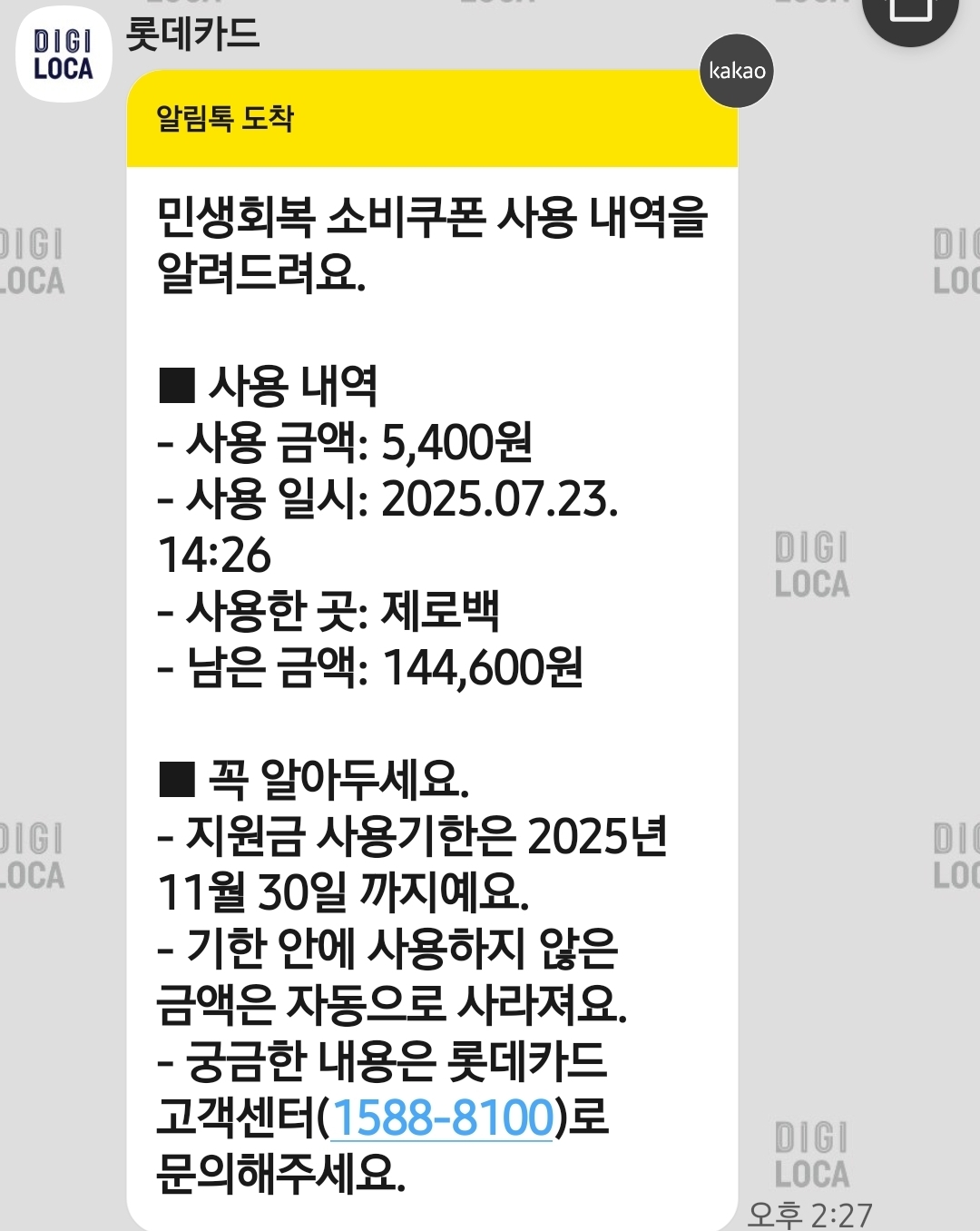 위와 같이 사용할 때마다 잔액을 친절하게 안내해 줍니다.