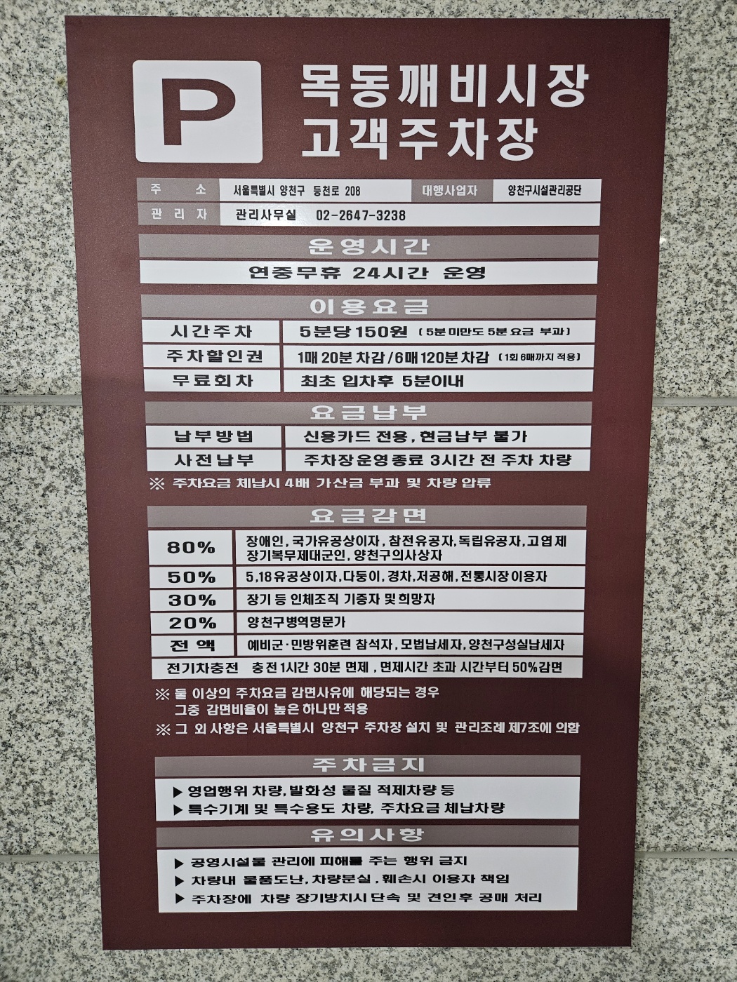 다행히 목동깨비시장 인근에 공영주차장이 있어서 방문하시는 분들이 이용하시면 좋을 것 같습니다.