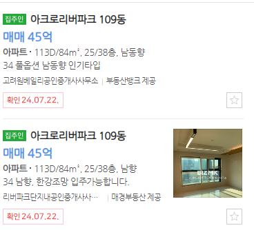 호가는 조금 거품일 수도 있어 최근 실거래가를 확인해 보니 면적별로 각각 30억 38억입니다.