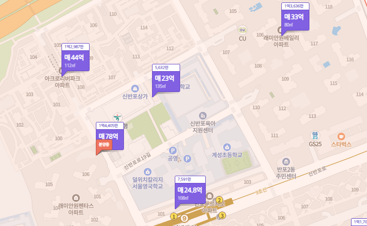 교통, 학군, 직장 모두 좋고 근처에 반포한강공원까지 있어 누구나 살고 싶은 입지입니다.