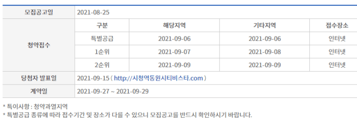 시청역 동원시티비스타 청약일정은 위와 같습니다.