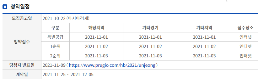 당첨자 발표일은 11월 9일이며 입주예정일은 2022년 8월입니다.
