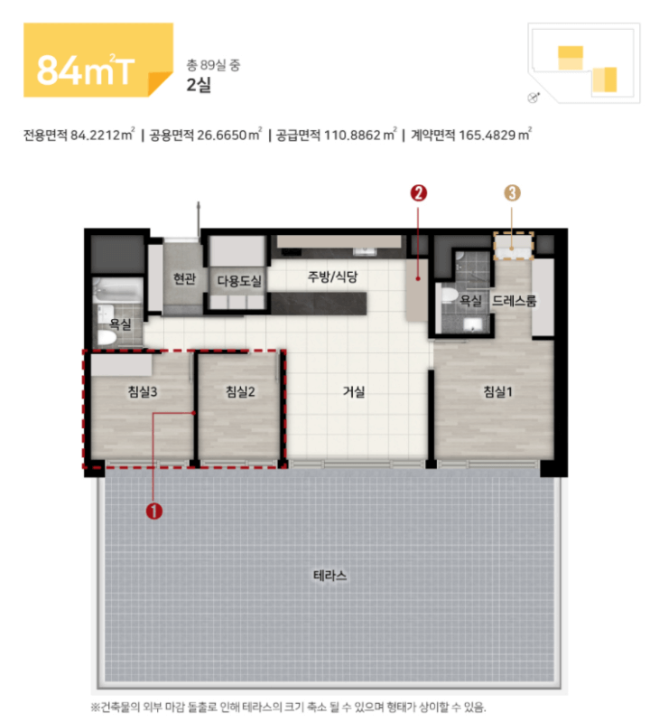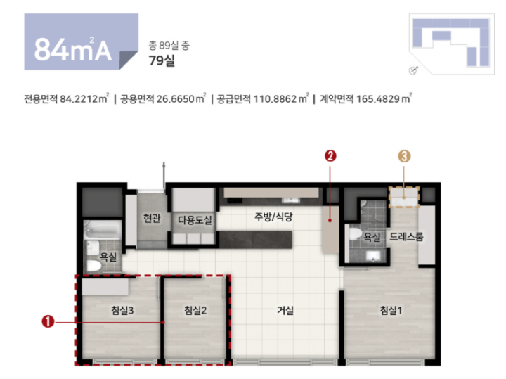 힐스테이트 과천청사역은 총 89세대를 공급합니다.